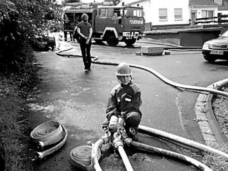 Nach der Mittagspause ging es dann auf beiden Wachen mit der Ausbildung weiter, auch Gerätepflege gehörte natürlich mit dazu! Nachdem man in Weitefeld noch einen Pkw-Brand bei der WEW gelöscht hatte gab es gegen 16.00 Uhr den ersten Großalarm wo beide Wachen gemeinsam löschen mussten! Unter den begeisterten Augen von Bürgermeister Wolfgang Schneider mußten die Jugendlichen das Feuerwehrgerätehaus Friedewald löschen! Jedoch auch diese Aufgabe konnten die Jugendlichen bravourös meistern!