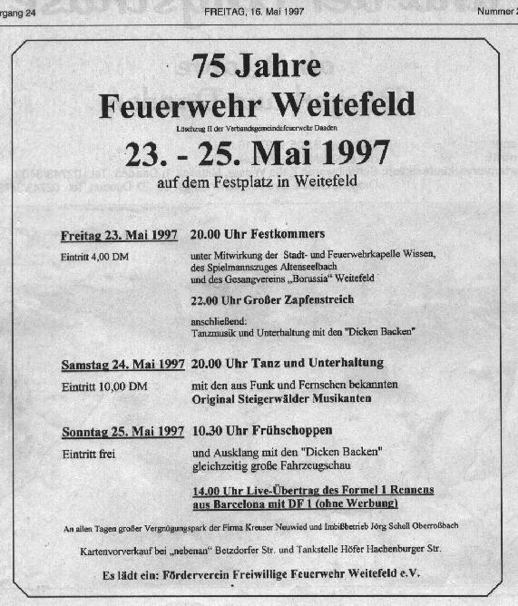 Startseite Archiv Bildergalerie Ereignisse / Veranstaltungen 75 Jahre FF Weitefeld (23. - 25.05.1997) 75 Jahre FF Weitefeld