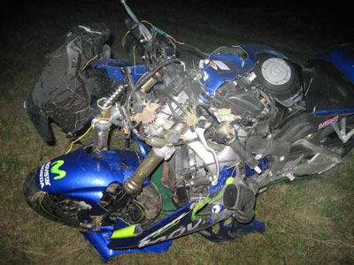 Nach einem Überholmanöver auf der L 286, kurz vor Weitefeld, drehte ein 24-jähriger Motorrad mächtig auf und schaffte die folgende Kurve nicht. Mit lebensgefährlichen Verletzungen brachte ihn der Rettungshubschrauber in ein Siegener Krankenhaus. Vom Motorrad blieb ein Schrotthaufen übrig.