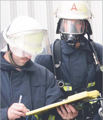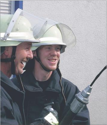 Als einer der ersten rollt Wehrführer und Einsatzleiter Heinz-Walter Haubrich im Einsatzleitwagen auf das Firmengelände. VG-Wehrleiter Peter Pauschert beobachtet dabei mit Argusaugen den Ablauf. Während die fünf Löschzüge einen Kraftakt leisten, erklärt er die Zielsetzungen der Übung: Einerseits soll die Löschwasserversorgung überprüft, andererseits der präzise Umgang mit Gefahrgütern trainiert werden. Pauschert: "Wir wollen zeigen, dass unsere Feuerwehren auch in der Lage sind, eine nicht alltägliche Gefahrenlage zu meistern." Dass dabei auch Fehler unterlaufen, hat für den Wehrleiter einen besonderen Lerneffekt. Der Löschzug Daaden erkundete die Lage und leistete Brandbekämpfung über die Anhängeleiter und weitere Schiebeleitern. Die Wasserversorgung wurde von den Wehrleuten aufgebaut und der Brand von innen wie außen vorgenommen; Pressluftgeräte kamen zum Einsatz. Von Leitern aus rückte auch der Löschzug Weitefeld (Wehrführer Jörg Hölzemann) den "Flammen" zu Leibe, ergänzte Wasserversorgung und unterstützte den Löschzug Niederdreisbach-Schutzbach (Wehrführer Klaus-Dieter Meyer) bei der Gefahrgutsicherung. Letzterer leitete Schadstoffmessung und -ermittlung ein, barg das gefährliche Material und transportierte es in eine Sicherheitszone. Gleichzeitig wurde das kontaminierte Löschwasser vor der Kanalisation aufgefangen.