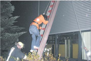 "Die Übung war bis zur letzten Sekunde geheim", berichtete Jörg Hölzemann, Wehrführer des Löschzuges Weitefeld. Erst im Feuerwehrhaus erfuhren die alarmierten Einsatzkräfte, dass es sich lediglich um eine Übung handelte. "Wir wollen ausprobieren, wie viele Wehrleute zum Einsatz kommen, wie die Zusammenarbeit funktioniert und wie stark die Gruppen abends und in der Nacht sind", erklärte Hölzemann weiter. Außerdem sollten die Wehren aus dem Umkreis das Objekt selbst kennen lernen. Zunächst traf der Löschzug Weitefeld ein und begann mit der Menschenrettung aus dem Bürogebäude. Die Verletzten wurden über eine Schiebeleiter gerettet und dem DRK übergeben. Außerdem bauten die Einsatzkräfte eine Beleuchtung um den Leiterstandort auf, bereiteten Maßnahmen zur Brandbekämpfung vor und sicherten die Straßenquerung. Der Löschzug Langenbach unterstütze die Weitefelder und begann mit dem Löschangriff über die Feuerleiter. Der Löschzug Elkenroth baute eine weitere Wasserversorgung auf und sorgte dafür, dass der Brand nicht auf den benachbarten Wald übergriff. Eine eingeklemmte Person in der Verladung wurde von den Feuerwehrleuten aus Neunkhausen befreit. Sie halfen des Weiteren bei der Löschung des Brandes.
