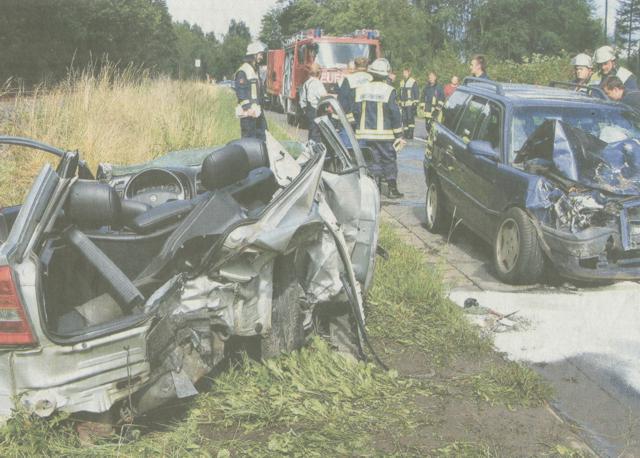 Durch die Wucht des Aufpralls wurde der Wagen des Unfallverursachers in den Straßengraben geschleudert. Die Feuerwehren Weitefeld und Daaden fanden den jungen Mann eingeklemmt in dem Wrack vor und befreiten ihn mit einer Rettungsschere. Beide Unfallbeteiligten wurden schwer verletzt ins Krankenhaus nach Kirchen gebracht. Die Autos haben nur noch Schrottwert. Die Polizei sperrte die Strecke für die Dauer der Versorgungs- und Aufräumarbeiten - etwa eine Stunde lang.