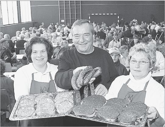 Ihre Uniformen tauschten die Weitefelder Brandschützer gegen Schürzen ein: In der neunten Auflage veranstaltete der Förderverein des Löschzugs sein Schlachtfest in der Turnhalle. Alleine 300 Teller füllten die Helfer in der Mittagszeit. 30 Aktive und 20 Ehefrauen tischten Fleischkäse, Wellfleisch, gekochte Rippchen, Sauerkraut, Püree und erstmals auch Eisbein auf. Wurstbrote, Schwartenmagen, Frikadellen, Bock-, Mett-, Leber- und Blutwurstwürste gingen außerdem über die Verkaufstheken. Mit dem Musikverein "Rot-Weiß" Nauroth füllten sich nachmittags die Stuhlreihen - und die Teller mit Kuchen. Bis kurz nach Mitternacht ließ DJ Stefan Frisch das Stimmungsbarometer und damit auch das Thermometer steigen - genauso wie den Absatz von Flüssignahrung.