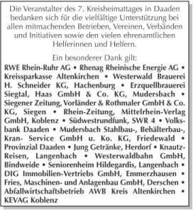 Der Landrat ist voll des Lobes ... Der Altenkirchener Landrat dankte den Rettungskräften der Feuerwehr, dem Deutschen Roten Kreuz, den Rettungshundestaffeln, der Polizei und den vielen Organisationen für Ihre Hilfe. ... "Ein besonderes Dankschön" zollte Beth der Westerwaldbahn und der Firma Knautz für den reibungslosen Transport der Besucher mit Bus und Bahn am Sonntag sowie dem Friedewälder Landwirt Rüdiger Buhl für die kostenlose Bereitstellung der Wiesen, auf denen die Autos geparkt wurden. ...