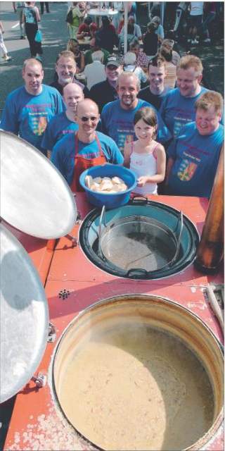 Unterhaltsames: "Die beste Erbsensuppe im ganzen Kreis" gibt es laut eigenen Angaben beim Förderverein der Freiwilligen Feuerwehr Weitefeld. Zusammen mit einigen Kameraden hat Schlossermeister Klaus Weinbrenner aus einem alten Anhänger eine Gulaschkanone gebaut - über 300 Liter passen in die beiden großen Kessel der mobilen Suppenküche. "Wenn wir nicht alles loswerden, gibt es bei uns eben die nächsten vier Wochen Erbsensuppe", scherzte Weinbrenner.