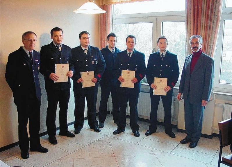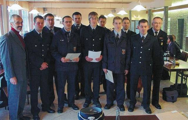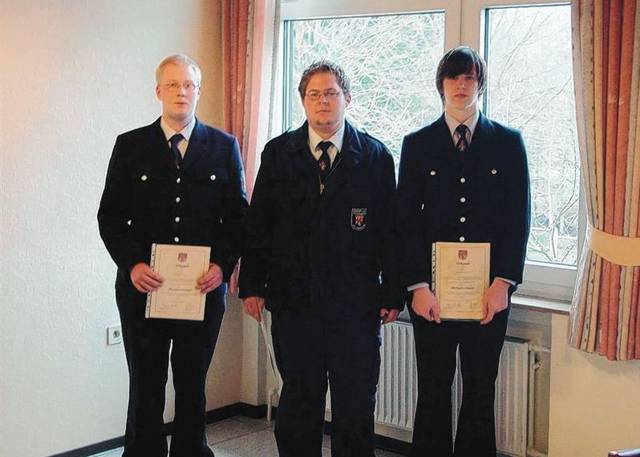 Verpflichtet und ernannt zum Feuerwehrmann-Anwärter wurden Daniel Düber, Markus Sief sowie David Braunert und Thomas Meyer. Beförderungen zum Hauptfeuerwehrmann erhielten Dustin Weber, Christopher Kirchhöfer, Christopher Duschek und Christian Meyer. Den Titel des Oberfeuerwehrmanns tragen ab jetzt Timo Schneider, Dennis Brüning, Oliver Schmidt und Fabian Kessler. Zum Feuerwehrmann befördert wurden Philipp Oel und Dennis Weyand, Martin Gerhard und Fabian Fries. Löschmeister wurden Hans-Martin Irmler, Wolfgang Reeh und Dirk Rosenkranz. Reiner John ist nun Hauptfeuerwehrmann. Mario Küssner sowie Florian Meyer sind jetzt Feuerwehrmänner.