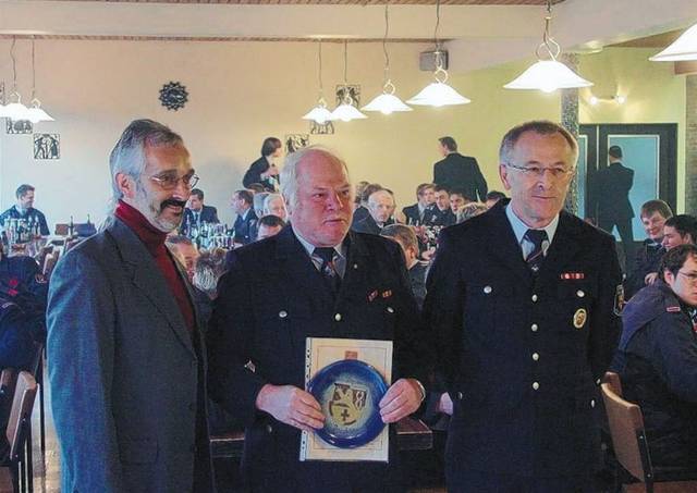 Nach 42 Jahren aktiven Dienstes in der Freiwilligen Feuerwehr Daaden und Erreichens der Altersgrenze verabschiedete Bürgermeister Wolfgang Schneider Richard Dormann mit einer Ehrenurkunde und einem Wappenteller der Verbandsgemeinde. Die Verabschiedung des langjährig Aktiven des Löschzuges 2 Weitefeld Holger Lichtenthäler wird in angemessenem Rahmen nachgeholt.