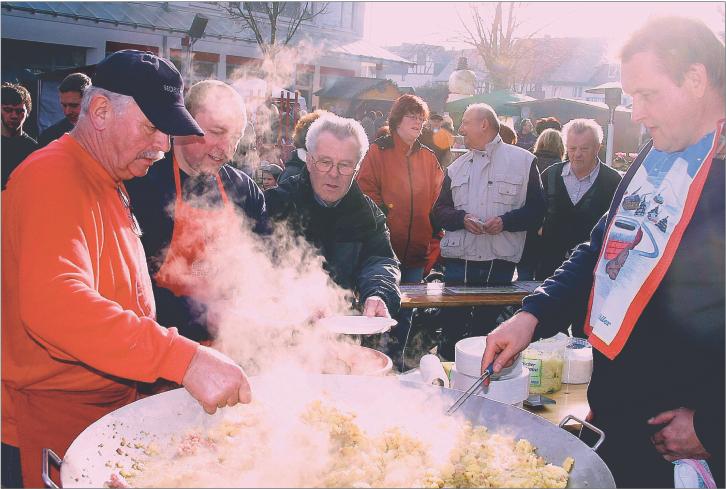 Alleine die Brandschützen setzten bis zum frühen Nachmittag bereits 50 Kilo Pfannengyros in bare Spendenmünze um, und beim Gesangverein fanden die hausgemachten Wurstbrote einen reißenden Absatz. Nachdem der letzte Tropfen Punsch in den Becher geflossen war, mussten die Sänger selbst ihr heißes Getränk von der Speisenkarte streichen. Und bei den Alten Herren war der Einkauf - obwohl gegenüber dem Vorjahr noch einmal erhöht - längst veräußert, als der Markt noch lange nicht beendet war.