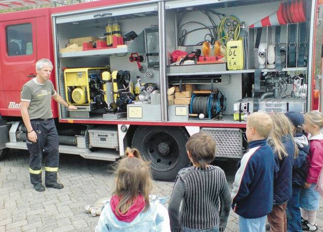 Wie alljährlich, führten auch dieses Jahr die Erzieher/innen der Kindertagesstätte in Weitefeld wieder den Schulkindertreff durch. Im zweiten Halbjahr des letzten Kitajahres findet für die angehenden Schulkinder alle 2 Wochen mittwochs nachmittags der so genannte Schulkindertreff statt. Seit Januar 2008 kamen Kinder und Erzieherinnen regelmäßig zusammen, um sich besser kennen zu lernen und gemeinsame Erlebnisse zu erfahren. Anfangs traf man sich zu Kennenlernspielen, spannenden Experimenten und Arbeitsblättern. Später besuchten alle die örtliche freiwillige Feuerwehr, welche sich Zeit nahm, den Kindern lehrreiches Wissen über Feuer, dessen Umgang und Arbeitsplatz- und Aufgaben der Feuerwehr zu vermitteln. Nach einer interessanten Diashow durfte sogar mit dem Löschschlauch gespritzt werden und alle hatten viel Spaß.