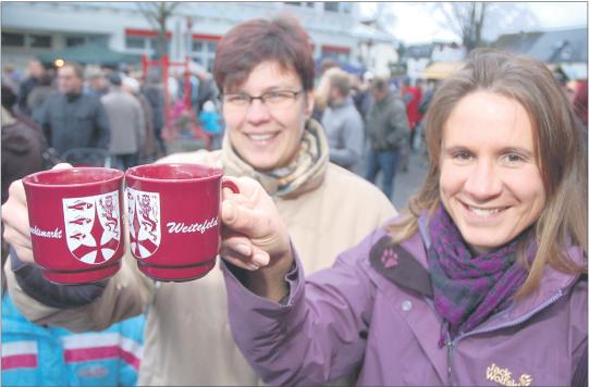 "Plätzdeckel", Gyros, Apfelstrudellikör, Lebkuchen, Crêpes, Weihnachtskonfitüre und gebrannte Mandeln waren nur einige der Leckereien, die angeboten wurden. Damit das wichtigste Getränk bei einem Weihnachtsmarkt anständig ausgeschenkt werden konnte, hatte die Ortsgemeinde Hunderte Glühweintassen mit dem Weitefelder Wappen fertigen lassen. "Damit es an allen Ständen einheitlich aussieht", erklärt Keßler.