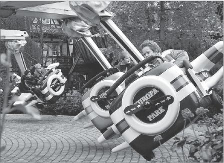 Nach gut zwei Kilometern Fahrt ging`s gleich weiter zum nächsten Erlebnis. Es reihte sich eine Achterbahn an die andere. Einen tollen Überblick hatten die Mutigen, die mit dem Aussichtsrondell bis auf eine Höhe von 75 Metern fuhren und den Erlebnispark bei der Rundfahrt von oben betrachten konnten.