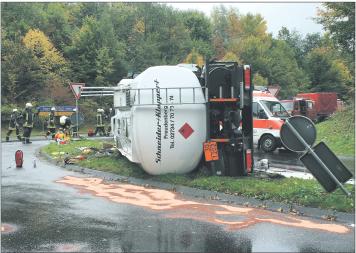 Das Entfernen der rutschigen Schmierstoffe übernimmt jetzt fast im gesamten Kreisgebiet die in Siegen ansässige Firma Dietrich, die seit Kurzem ein entsprechendes Spezialfahrzeug im Etzbacher Industriepark vorhält. Ihre ersten Einsätze im Kreisgebiet hat die Firma bereits erfolgreich hinter sich gebracht. So reinigte sie unter anderem die Fahrbahn nach dem spektakulären Tanklasterunfall Anfang Oktober in Wehbach. Zudem ist das Unternehmen mit rund 40 Beschäftigten in den benachbarten Landkreisen im Siegerland tätig. Mit ihren Ölspurbeseitigungsmaschinen bringen die Fachkräfte mit Hochdruck einen Wasserstrahl auf die Ölverschmutzung auf und saugen gleichzeitig durch Erzeugen eines Vakuums die Fahrbahn ab. Die ausgelaufenen Schmierstoffe landen mit dem Wasser in einem Tank, die Straße wird so porentief gereinigt. Uwe Dietrich von der Siegener Spezialfirma ergänzt: "Wir sind 24 Stunden im Einsatz, auch an Wochenenden und Feiertagen."